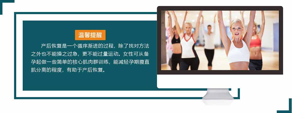 产后多久可以运动取决于产妇自身身体恢复情况,无论是顺产还是剖腹产,只要伤口恢复好了就可以运动,但要注意运动的时长和强度,切不可超负荷健身。产后恢复操可以让唤醒产妇的肌肉群,对腹直肌和盆底肌修复都非常有好处。